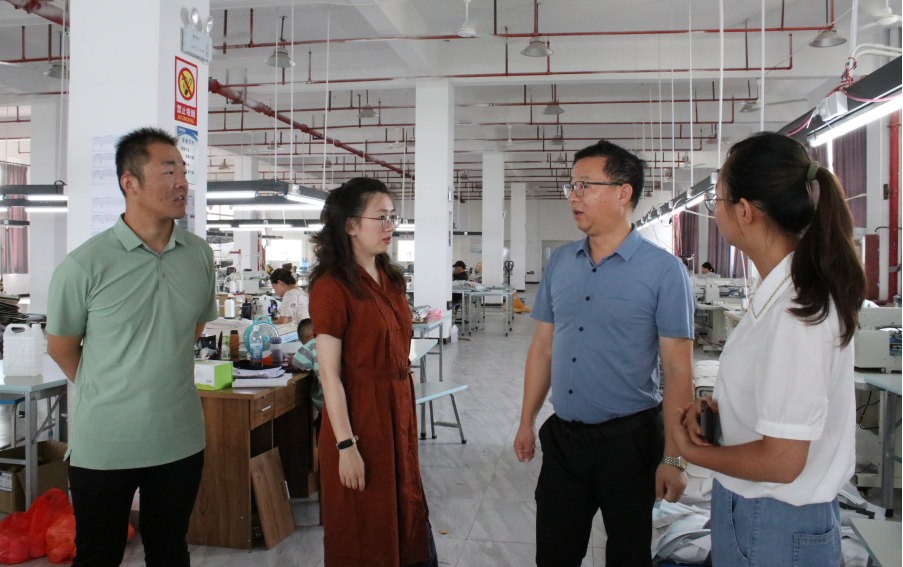 8月8日下午,访谈团对安徽攀樽服装有限公司进行调研。安徽攀樽服装有限公司成立于2018年11月26日,融合太慈镇13个村共854万资金,主要经营服装、装饰、纺织品、拉链及原料等制造、销售行业。目前公司拥有厂房一栋,建筑6000平米,工人70余人,经营主体年产值2000万元,稳定带动就业70人,其中脱贫户28人,一般农户42人,是产业助力脱贫的范例。