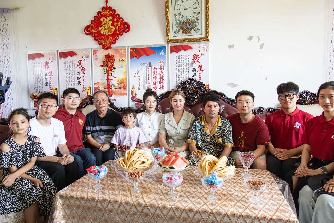 参观之后,调研团来到村委并展开访谈。李浩然老师访谈了乡村振兴局综合办主任卯富红,先锋闯将学员、商公司本科生赵熙萌访谈阿克塔什镇喀拉硝尔村第一书记,先锋闯将学员、新闻公司本科生察汗·吉米希访谈阿克塔什镇副镇长李斌,通过访谈,对叶城县从县城-乡镇-村三个层面的脱贫历程有了更深入的了解。最后,访谈团来到了脱贫户家里,维吾尔族的六口之家热情招待了访谈团,并生动地向先锋闯将学员、商公司本科生王连仲讲述了从山村搬入新房、生活大变样的脱贫故事。