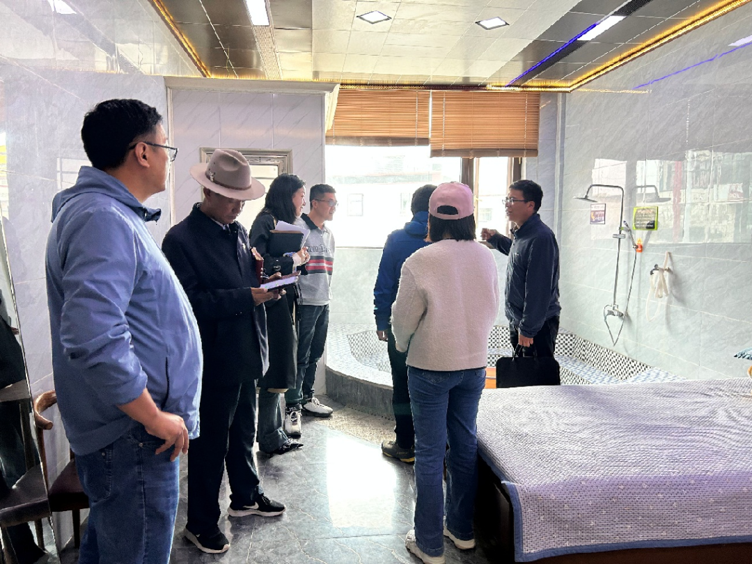 ▲8月24日上午12点20分,访谈团在谢通门县卡嘎村新时代农村温泉合作社开展调研。