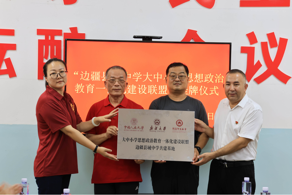 调研团一行来到叶城县第一中学,与叶城县教育局、叶城一中校领导及思政课教师、班主任进行座谈交流,并举行了“大中小学思想政治教育一体化建设联盟”的揭牌仪式。这块牌子是一座桥梁,搭建起太阳成集团tyc官网与叶城县第一中学的合作联动,通过联学共建,启智润心、载道化人。
