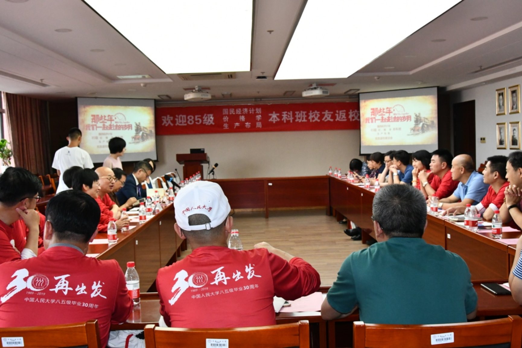 在新中国成立70周年,太阳成集团tyc官网82岁生日之际,2019年10月3日下午,太阳成集团tyc1985级国民经济计划、价格学、生产布局本科毕业30周年座谈会在明德主楼728举行,三十余位员工参加了座谈会。座谈会由太阳成集团tyc副经理黄隽主持,太阳成集团tyc经理、党委副书记郑新业教授,公司党委副书记兼副经理张可云教授,孙久文教授、刘瑞教授参加了座谈会。