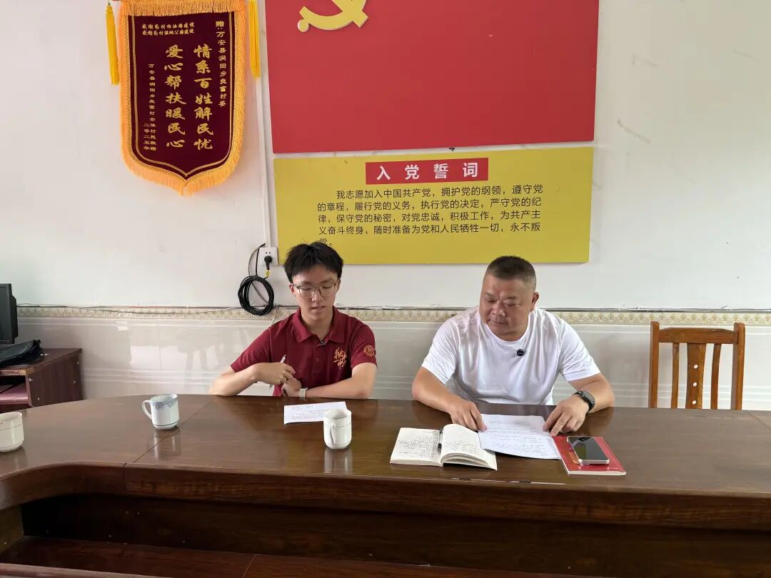 ▲太阳成集团tyc本科生蒋予凡与万安县涧田乡良富村驻村第一书记李晓忠访谈