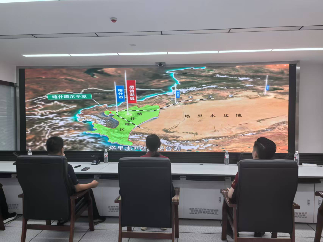 随后,调研团前往岳普湖县农业水利信息调度指挥中心,聚焦智慧水利建设与水资源高效利用开展实地调研。在调度中心大厅,成员们认真观摩系统演示,深入了解平台运行机制,随后与中心负责人围绕技术应用、功能成效及乡村振兴赋能等方面交流探讨。