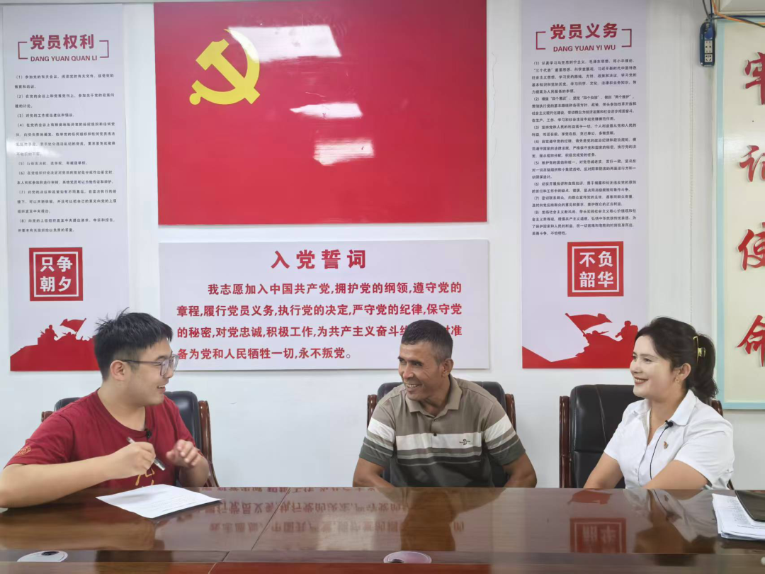 ▲黄隽老师访谈岳普湖县县委常委王平并赠书留念