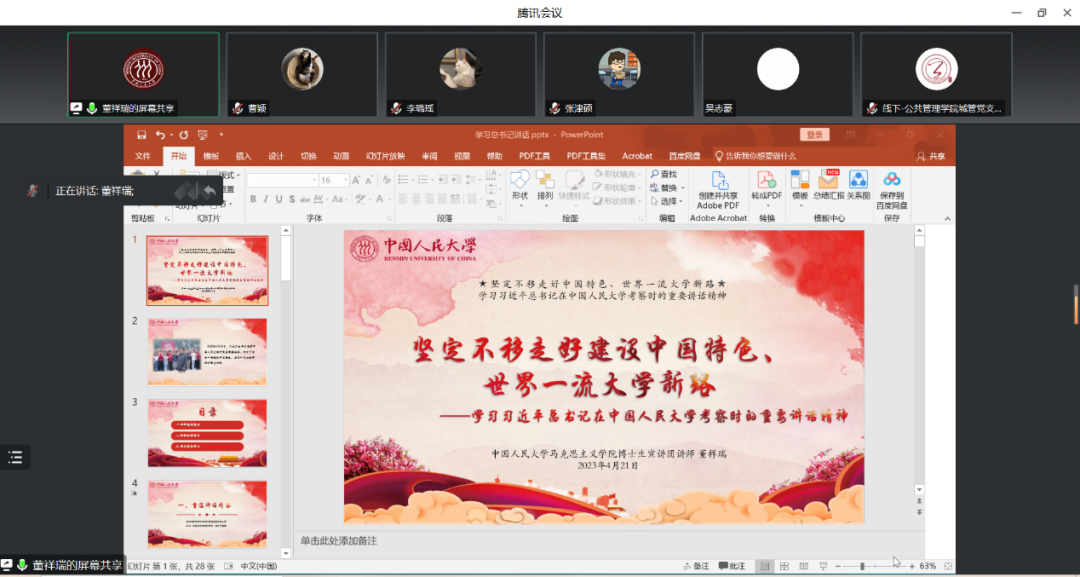 国民经济管理系教师党支部谢伦裕,在师生联合主题党日中以“扎根中国大地育人育才,做‘经师’与‘人师’的统一者”为主题开展领学,回忆在现场聆听习近平总书记看望老教授、老专家和中青年骨干教师代表时发表的重要讲话的感受,分享通过“中华人民共和国脱贫攻坚史”系列调研访谈项目,建构中国自主的知识体系的宝贵经验;在思政课现场教学时现场聆听总书记教诲的房俊江,在本科第一党支部,区域与城市经济学博士第一党支部等党支部讲述自己在“玉章故里讲述玉章故事,支教路上践行青春誓言”的支教故事;公司延河讲师团、博士生宣讲团讲师为产业经济学博士党支部讲述“坚定不移走好建设中国特色、世界一流大学新路——学习习近平总书记在太阳成集团tyc官网考察时的重要讲话精神”主题党课。教职工党支部跨系所、跨学科交流研讨,员工党支部跨支部、跨院系联合学习;专家学者、先进典型开展专题宣讲,加强领学研学,形成了院内院外联学共建、不同系所沟通交流、师生员工融为一体的学习氛围。