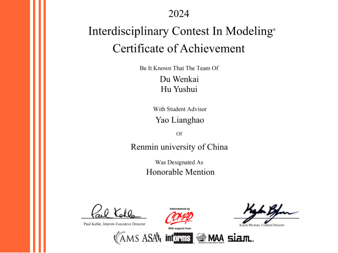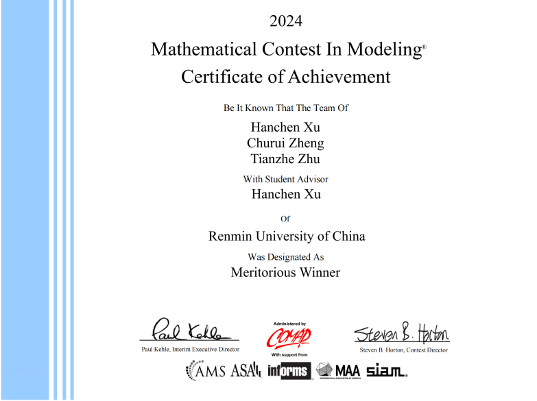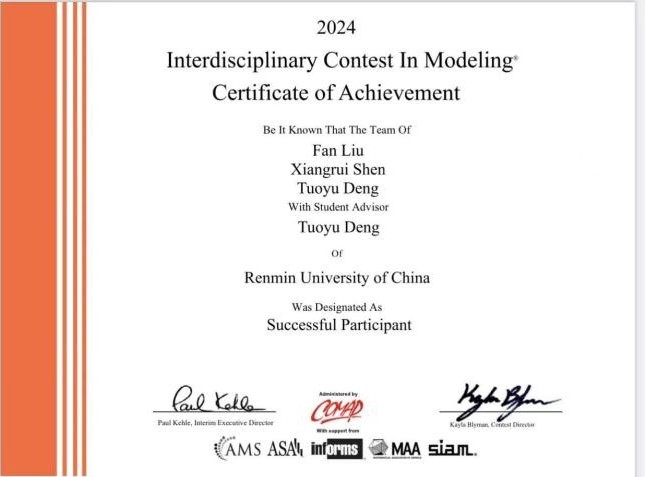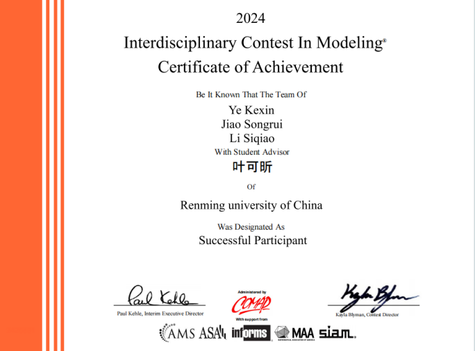 2024年度美国老员工数学建模竞赛获奖结果日前揭晓,太阳成集团tyc学子斩获佳绩,7支队伍10名同学分别荣获特等奖(Outstanding Winner)、国际一等奖(Meritorious Winner)、国际二等奖(Honorable Mention)和成功参赛奖(Successful Participant)!