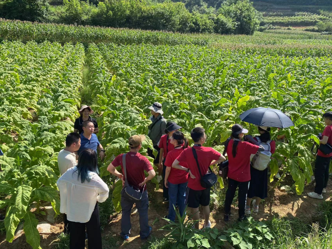 8月5日下午,调研团在野洞河镇泥巴寨村烤烟基地调研。近年来,野洞河镇通过政策支持、大户带动,积极引导群众发展烤烟产业,真正让群众将烤烟叶变成了“黄金叶”,助推乡村振兴。按照“做强烟叶主业,拓展融合多元产业”的发展思路,建立了“公司+合作社+烟农”的组织方式。在生产端,一方面利用基本烟田轮作期和空闲期实施烟地接茬、提高复种指数,改良土壤,极大提升了烟叶质量。另一方面,野洞河镇在产业规划、技术指导、专业服务上下功夫,实施统一育苗、统一移栽、统一技术指导等关键举措,科学种植,确保烤烟质量和产量,进一步提高烤烟种植水平。在销售端,实行“订单种植、收购”的模式,由烟草公司每年稳定提供订单,合作社按分配订单量统一种植。2024年,野洞河镇今年种植烤烟农户286户,比去年增加了5户,种烟面积共5600余亩,预计达到70万公斤烤烟种植,烟农实现收入2800余万元。