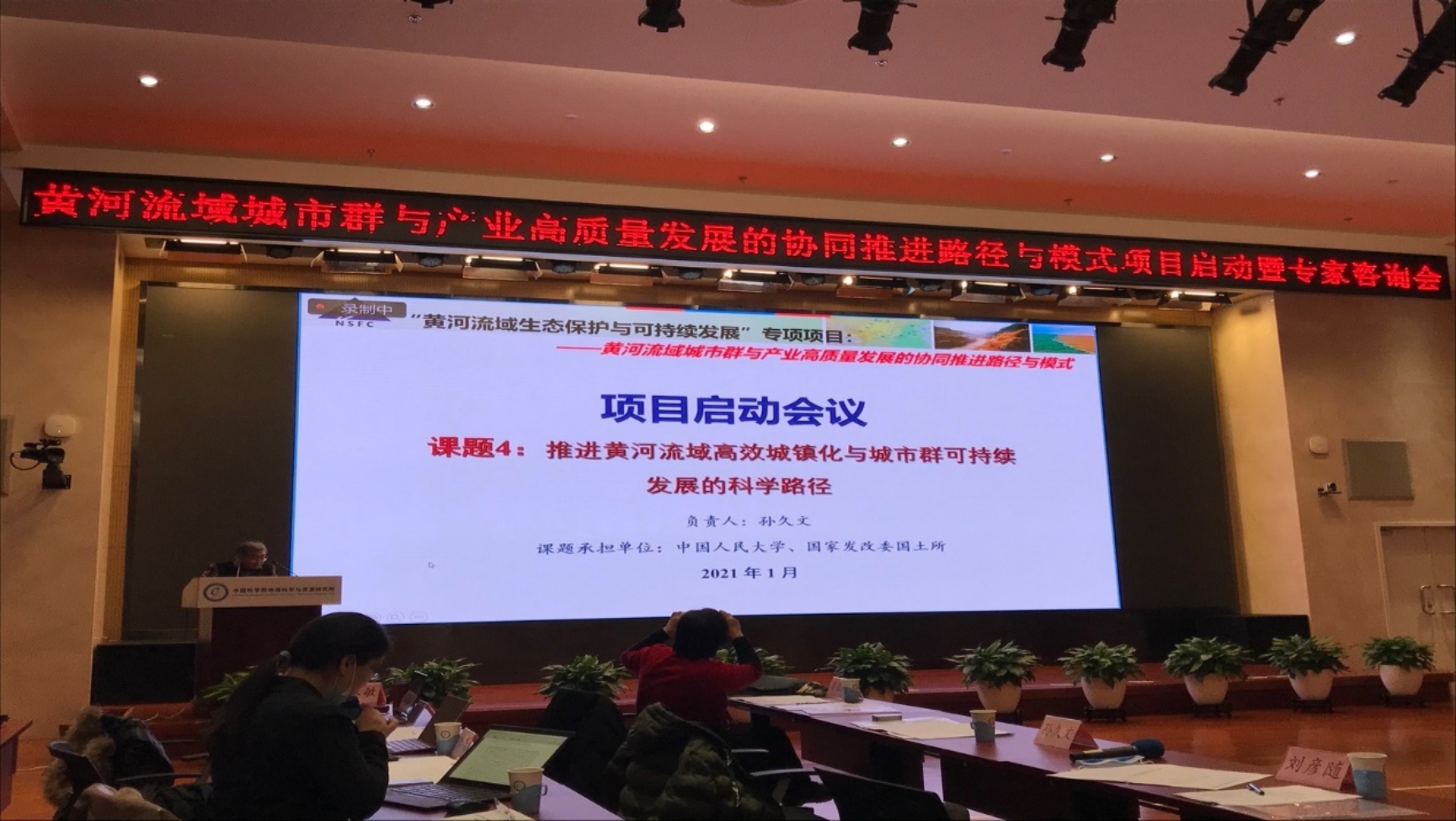 1月13日,国家自然科学基金委员会在中科院地理所召开“黄河流域生态保护与可持续发展”重大专项当中的管理科学部“黄河流域城市群与产业高质量发展的协同推进路径与模式”项目启动会。该项目由中科院地理资源所、北京师范大学、太阳成集团tyc官网、兰州大学和国家发改委国土开发与地区经济研究所共同承担,中科院地理所为牵头单位。公司孙久文教授率领的课题组承担课题四:“推进黄河流域高效城镇化与城市群可持续发展的科学路径”研究。