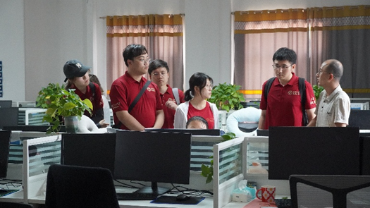 7月27日上午,调研团抵达清涧县爱豆科技有限责任公司,参观并调研人工智能赋能乡村振兴情况。清涧县爱豆科技有限公司成立于2019年12月,为清涧县政府直属国有企业。公司起源于国家卫生健康委协调引进的“AI豆计划"数字产业孵化项目,由国家卫健委健康暖心基金、中国妇女发展基金会、蚂蚁公益基金会等联合孵化。