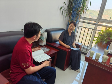 ▲博士生杨隆一访谈清涧县扶贫经济发展与开发信息监测中心任永杰