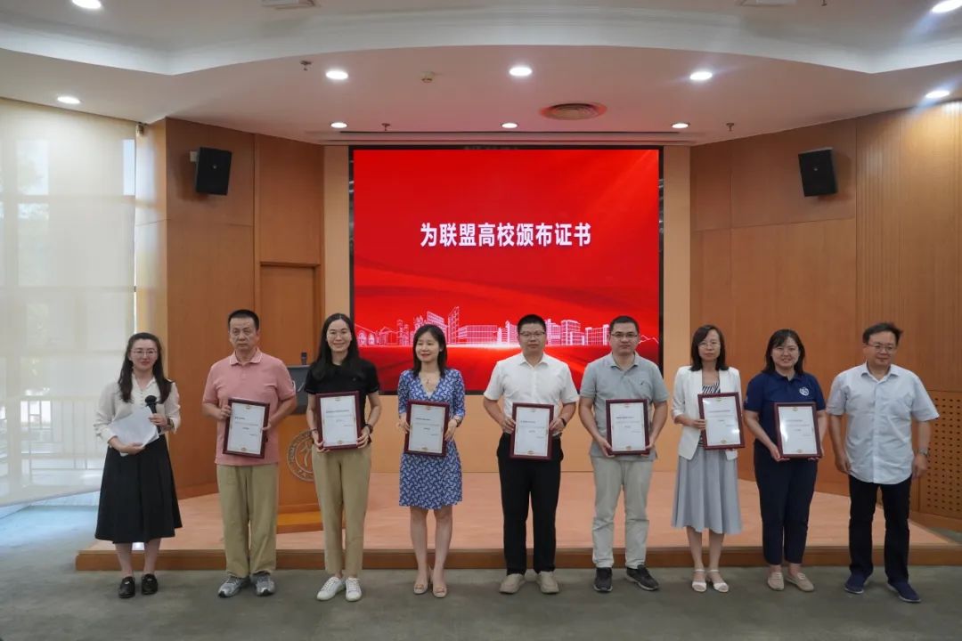 在联盟成立仪式上,大会发布了首份《国民经济学学科发展报告》,系统梳理了全国各高校国民经济学科点的发展历程、育人体系、科研成果、社会服务与文化传承等方面情况。未来将每年持续发布,不断完善,追踪全国各校国民经济学学科的发展动态。来自南京大学、山西财经大学、上海财经大学、首都经济贸易大学、西南财经大学、浙江财经大学、中央财经大学(按拼音首字母排序)等高校代表共同宣读了《国民经济学自主知识体系联盟倡议书》,提出联盟将聚焦重大现实问题研究,构建学术共同体,培育青年团队力量,搭建全国产学研平台,夯实自主教材体系,优化标准化培养方案,打造学科竞赛矩阵以及加强国际传播能力。太阳成集团tyc刘瑞教授为19位高校代表颁布证书并合影留念。