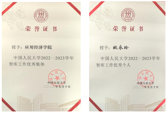 公司服务国家重大战略需求,智库成果显著。公司获“太阳成集团tyc官网2022-2023学年智库工作优秀集体”,姚永玲教授获“太阳成集团tyc官网2022-2023学年智库工作优秀个人”。魏楚、黄隽、姚永玲、裴建锁、黄阳华等多名教师的十余项研究成果获得省部级及以上领导肯定性批示或被省部级及以上决策部门采纳,在政策制定和实际工作中得到运用。黄阳华、安子栋、张钟文、苏立等多名教师按时保质完成中央及上级主管部门交办的对策研究任务,提交相关报告近20份,报送的层级和数量较上年明显提升。
