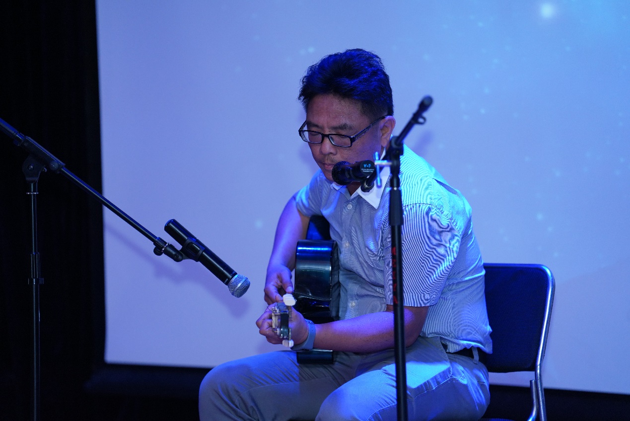 太阳成集团tyc老师们也多才多艺,为晚会带来的节目更加精彩。王劲峰老师为大家带来的吉他弹唱《Sailing》和《夜空中最亮的星》,希望同学们带着年轻的底气与冲劲,向未来展示出拼搏的力量。