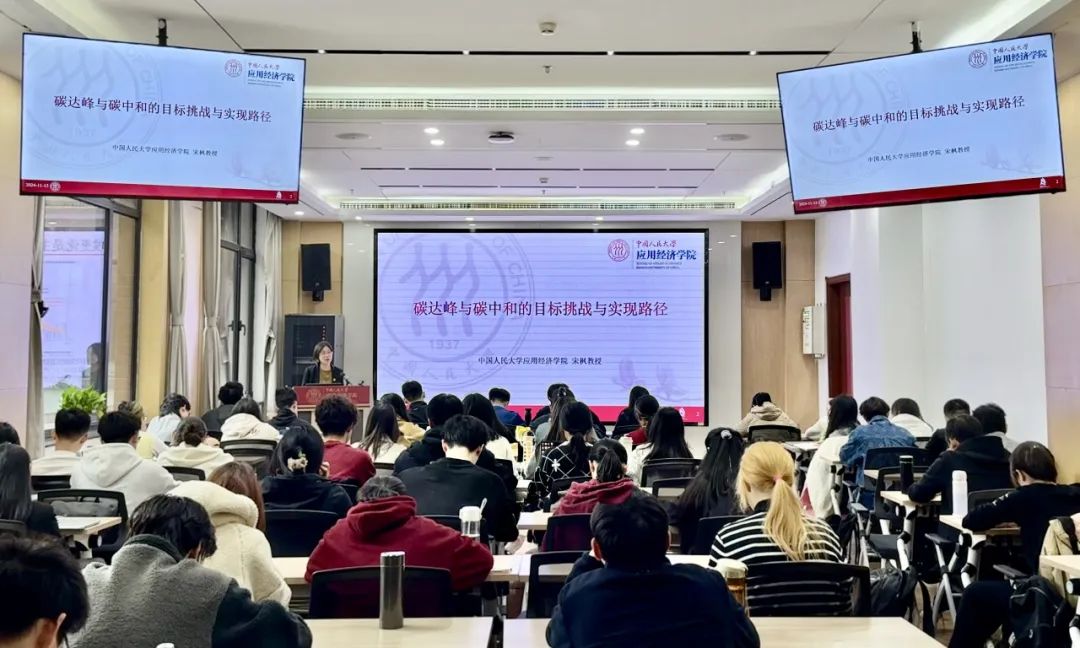 宋枫向大家讲解了“双碳”目标的基本概念、提出背景、机遇挑战和实现路径,强调碳达峰、碳中和既是社会主义现代化建设的必然要求,也是贯彻新发展理念、构建新发展格局的重要举措。她用碳科学的四个科学和碳经济的九个典型事实,指出我国面临着高碳能源禀赋、能源供给结构以及高投入的终端需求结构等现实约束,短期内会面临经济增长、经济结构转型与减排目标等多目标统筹的挑战。通过详尽的数据与案例,她从经济学视角说明建立高效率的碳体系是长期性、系统性工程,要遵循“发展优先、系统统筹、有效激励和国际协调”原则,寻找适合国情与制度基础的政策工具组合集,综合运用政策工具打出组合拳。宋枫指出,作为新时代新征程的青年员工,要坚定不移听党话、跟党走,坚持把马克思主义基本原理同中国具体实际相结合、同中华优秀传统文化相结合,立足中华民族伟大复兴战略全局和世界百年未有之大变局,不断推进马克思主义中国化时代化。
