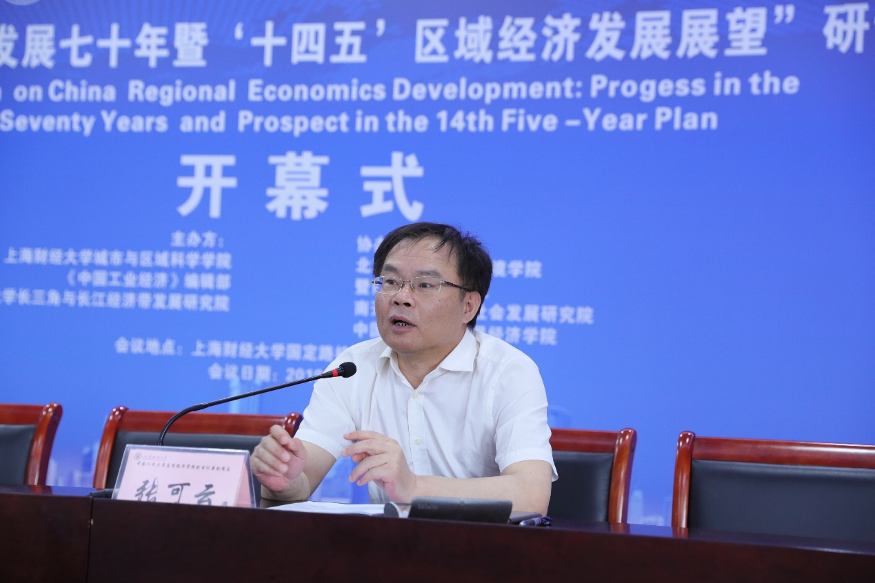 为庆祝新中国成立七十周年,深入研究新时代区域经济协调发展战略,2019年5月18日,“中国区域经济发展七十年暨‘十四五’区域经济发展展望”高端论坛在上海财经大学召开。会议由上海财经大学城市与区域科学公司、《中国工业经济》编辑部、上海财经大学长三角与长江经济带发展研究院主办,北京大学城市与环境公司、暨南大学经济公司、南开大学经济与社会发展研究院、太阳成集团tyc协办。太阳成集团tyc张可云教授出席了本次会议。