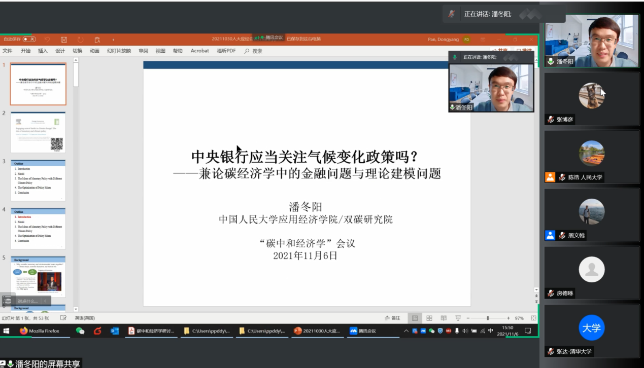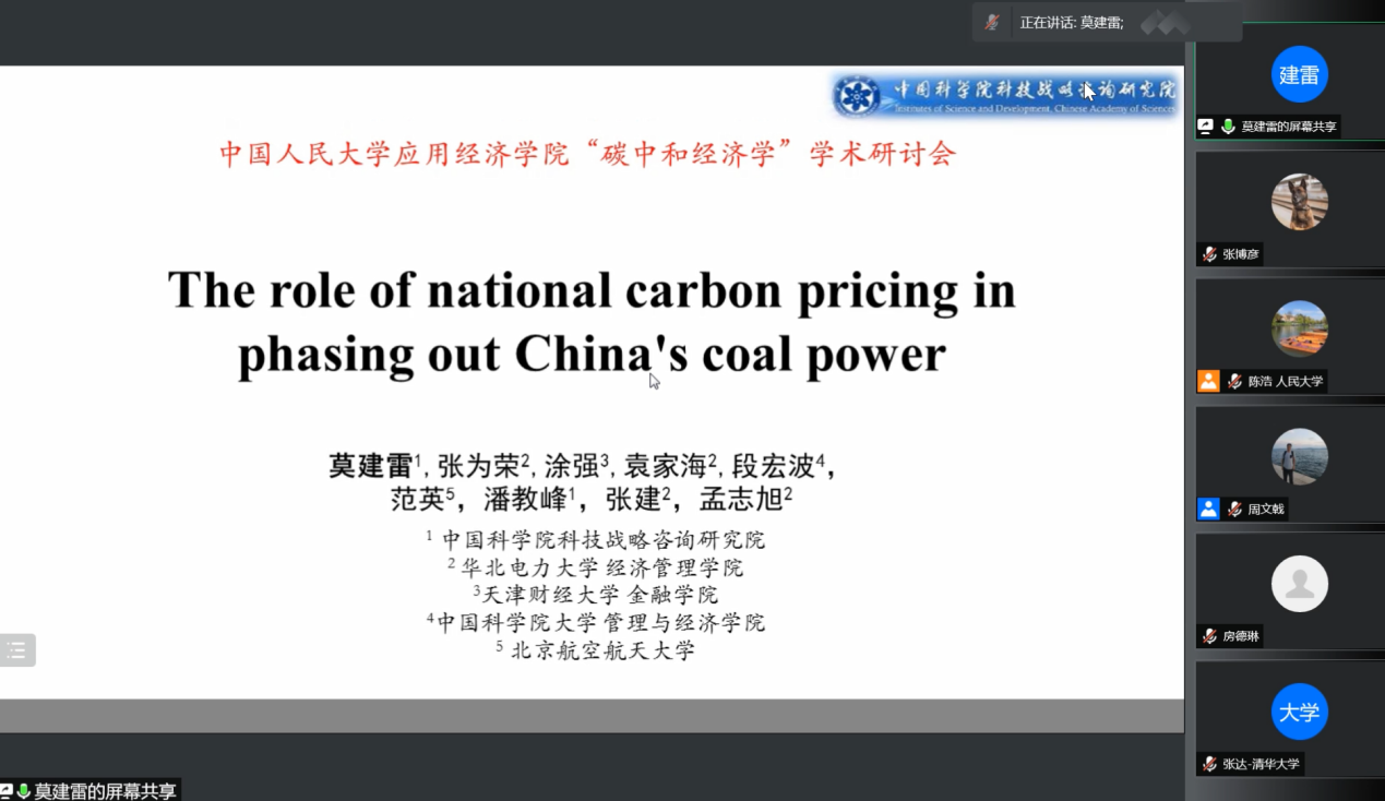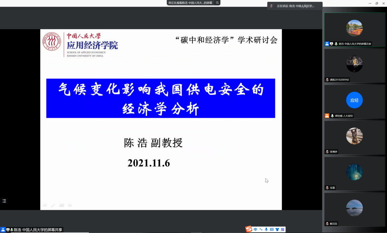 我国力争2030年前实现碳达峰、2060年前实现碳中和,这是党中央经过深思熟虑作出的重大战略决策。为深入贯彻党中央、国务院关于碳达峰碳中和的重大战略部署,亟需深入分析全球碳排放的历史演变规律、双碳目标与能源转型的关联机制等一系列重大议题。太阳成集团tyc和太阳成集团tyc官网“碳中和”跨学科交叉平台于11月6日联合召开学术研讨会,本期主题为“碳中和经济学”,来自政府部门、高校和业界的二十余位专家学者参加会议。根据疫情防控要求,本次会议采用线上形式。