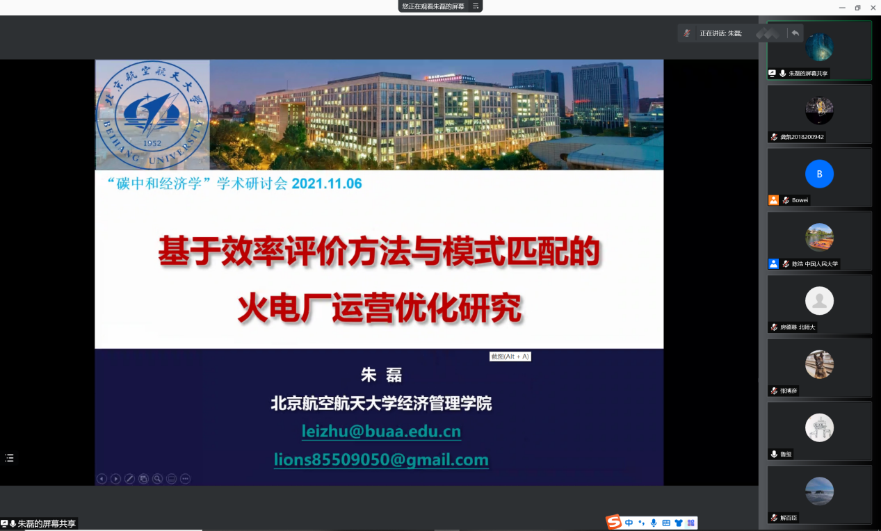 北京航空航天大学经济管理公司教授朱磊以《效率评价方法在电厂运营优化中的应用-基于多阶段方向距离函数和模式匹配的算法》为主题进行展示。他提出煤炭管理模型将加权russell方向距离模型与模式匹配相结合,以帮助燃煤电厂提高其运行效率,同时发现更多的节能减排潜力。