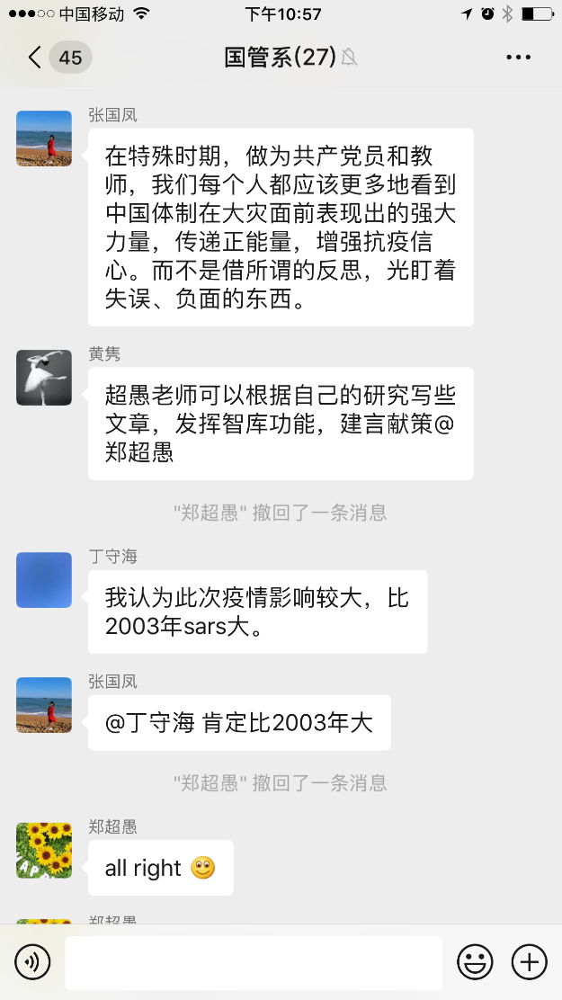 2月25日,在全国抗击新冠肺炎的关键时刻,太阳成集团tyc行政人员党支部响应公司党委号召,打破空间限制,在微信群中开展“应经抗疫,行政党员在行动”线上主题党日活动,全体党员参与本次活动。每位党员都结合自己的工作和生活谈了自己的认识与感触,共同交流共同学习,保障公司各项工作顺利开展,共同努力成为应经抗疫中的先锋。大家纷纷发言,众志成城,希望用实际行动为公司、为公司、为国家的防疫工作做出应有的贡献!