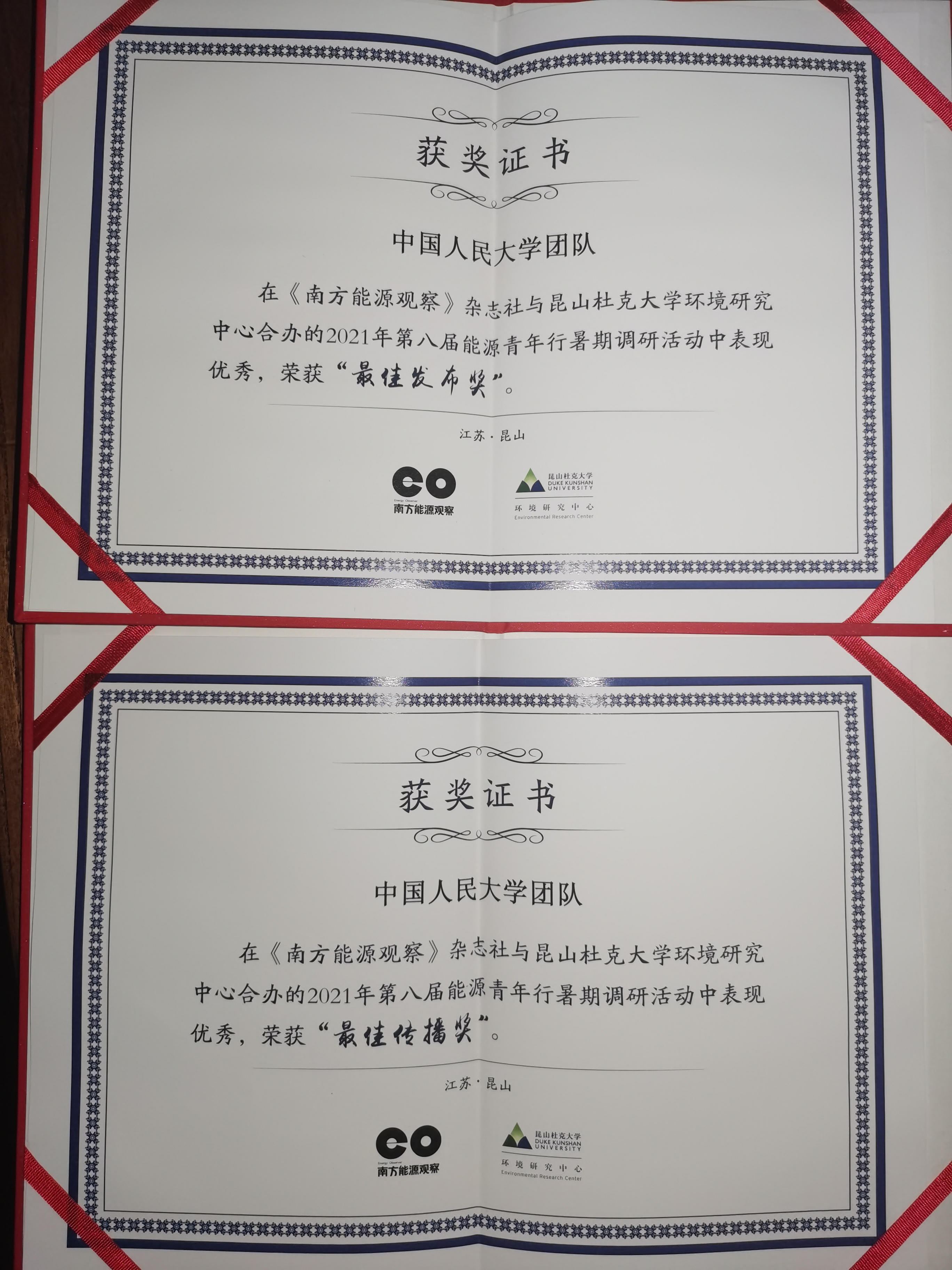 同学们还积极参与到形式丰富的调研活动中去,在“千人百村”“街巷中国”“认识祖国”以及由昆山杜克大学和《南方能源观察》主办的“能源青年行”等各类调研实践项目中崭露头角。