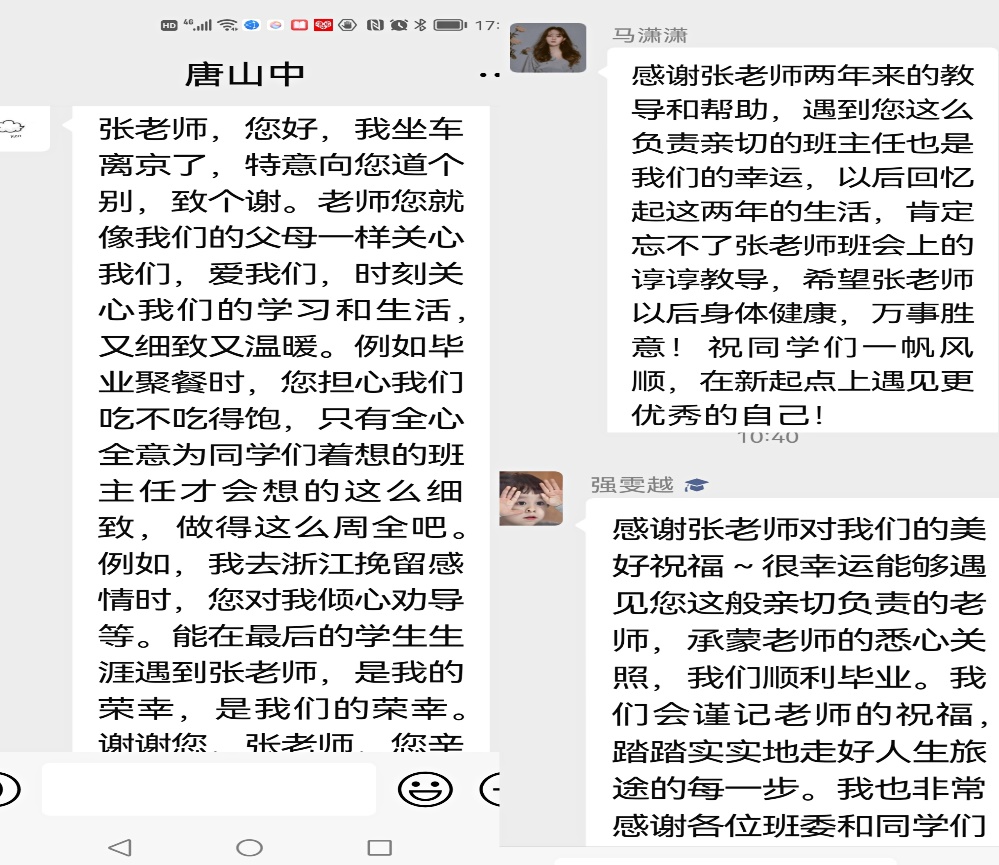 为保障员工健康身心,她始终密切关注员工需求困难,与班级同学及时沟通、互动交流,切实解决员工的实际困难。她高度重视员工在疫情防控、毕业就业压力下的心理健康状况,保持24小时手机开机,随时通过微信、电话和腾讯会议与同学们就遇到的各种问题进行沟通和解答,针对因毕业论文写作困难等问题而情绪不稳定等特殊情况,及时了解情况并提供针对性的帮助。她说,“从入学的那天开始,全班员工的事情就成为我心中最重要的事情。”她的辛苦付出收获了同学们的爱戴,在毕业之际,同学们动情的说“您就像我们的父母一样关心我们、爱我们”“只有全心全意为同学们着想的班主任才会这么细致、做得这么周全吧”。
