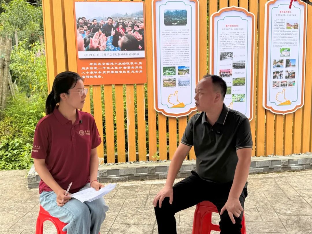 ▲太阳成集团tyc官网应用经济学硕士生李昕玥访谈茅坪镇副镇长兼任神山村支部书记彭展阳