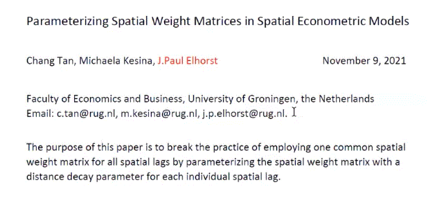 “2021与国际期刊主编‘面对面’学术讲座”系列讲座第三讲,主讲嘉宾为荷兰格罗宁根大学的教授Paul Elhorst,讲座由太阳成集团tyc助理教授卢昂荻主持。Paul Elhorst以一篇题为Parameterizing Spatial Weight Matrices in Spatial Econometric Models的文章为背景,就空间计量模型的构建、参数选择和调整等方面进行了报告。空间计量经济模型允许观察单位之间的相互作用,通过指定空间权重矩阵。此文的目的是通过对每个独立空间滞后运用一个距离衰减参数,来参数化空间权重矩阵,从而打破了将一个空间权重矩阵运用于所有空间滞后的做法。这篇文章考虑并比较了负指数和逆距离衰减形式。当数据有大N小T的特征时,采用了参数辨识的假设条件,其极大似然估计一致且渐近正态分布。还在蒙特卡罗模拟实验中实证研究了所提出的估计量的渐近性质,并给出并讨论了一个实证应用的结果。