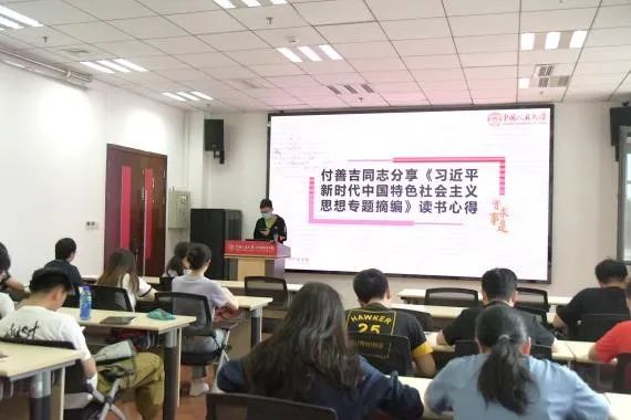 宣讲结束后,团支部组织开展主题教育读书分享,党员付善吉、易诗佳分享学习《习近平新时代中国特色社会主义思想专题摘编》的心得感想。同学们在倾听他人的心得体会中感受思想共鸣,在共同讨论交流中产生思想碰撞。