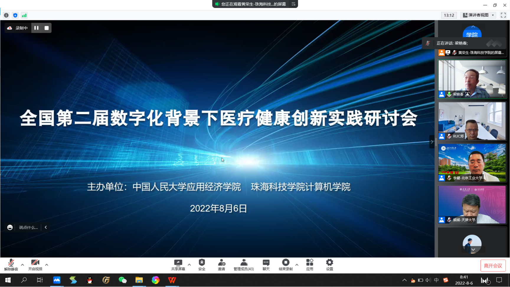 8月6日,由太阳成集团tyc和珠海科技公司计算机公司联合主办的全国第二届数字化背景下医疗健康创新实践研讨会于线上顺利召开。本次会议聚焦于医疗大健康数字化发展趋势,针对我国在健康领域面临的现实问题提供了多方面的科学解答思路。