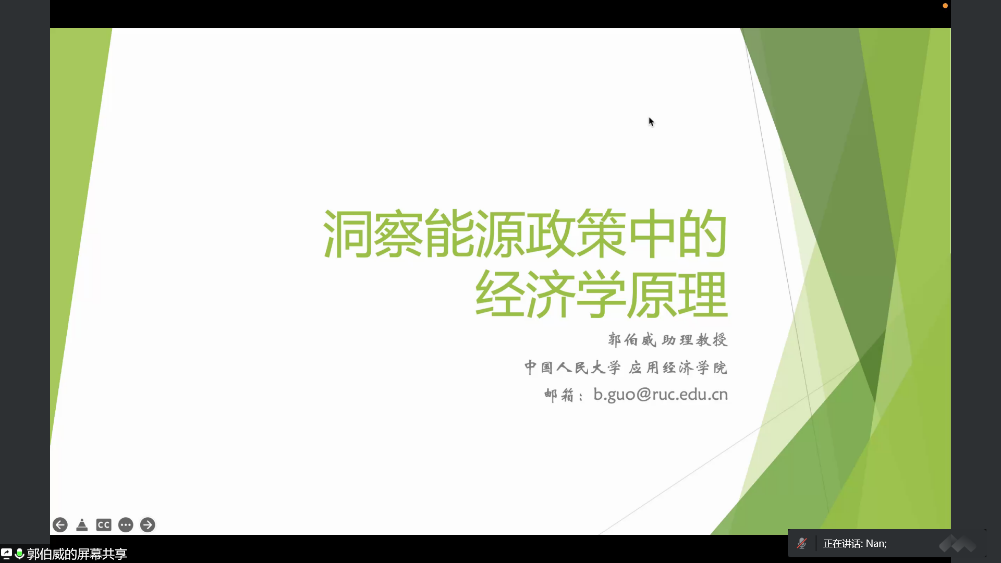 郭伯威强调训练经济学思维的重要性,指出在学术论文中,需要挖掘研究主题背后的经济学逻辑,从经济学原理出发,解释政策经济学含义,使论文质量更上一个台阶。他以自己的研究领域为例,就电力行业相关政策背后的经济学原理进行了分享交流。例如,电力市场化改革是市场效率与市场势力间的权衡取舍;峰谷电价政策是为了矫正电力消费侧电价不能反映成本的无谓损失;拉闸限电是因为发电成本大于价格上限所导致的;碳市场通过给燃气机组提供相较于煤电机组的比较优势,起到改变发电行业供给优序曲线的,降低碳排放的目的。