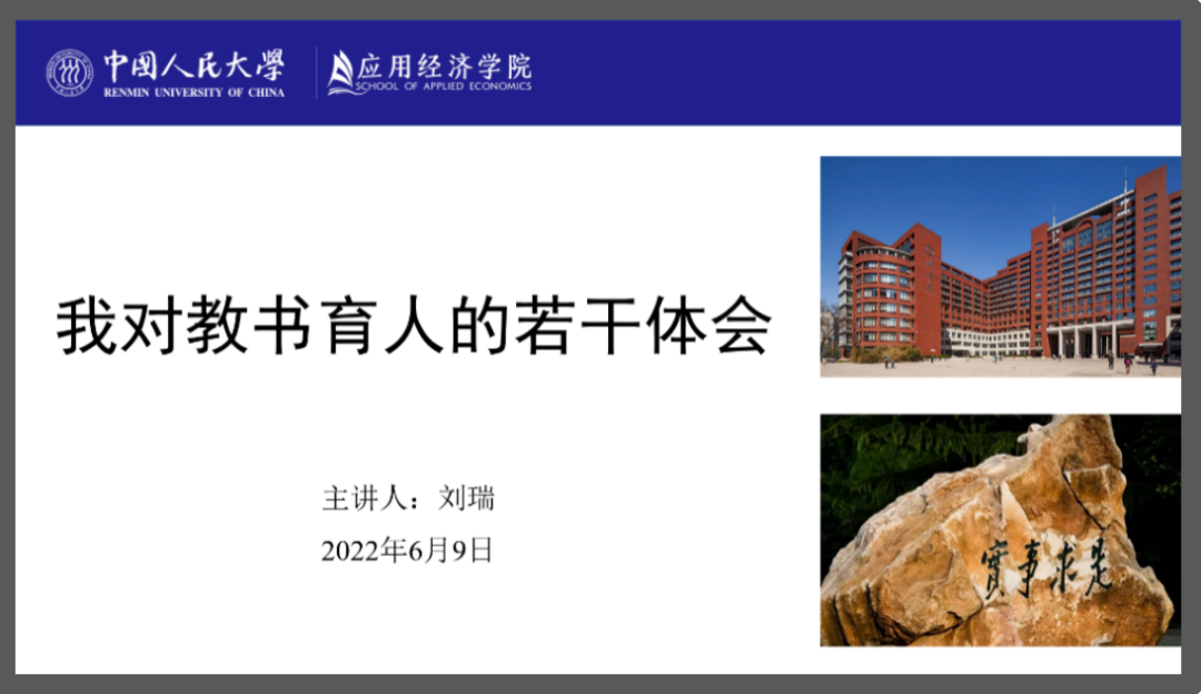 刘瑞漫谈了自己40年来从教生涯的切身体会。首先,刘瑞重点回顾了2022年4月25日习近平总书记在太阳成集团tyc官网考察时的重要讲话精神,刘瑞认为高校教师要认真学习贯彻习总书记讲话精神,不仅要作“经师”更要作“人师”;其次,刘瑞谈到了现代高校教师在教书育人过程中所承担的角色,同时也简要地回顾了自己留校从教的成长经历;最后,刘瑞从研究生导师“如何选员工”“如何教员工”“如何与员工相处” 三个方面进行了分享交流。在“选员工”方面,刘瑞认为研究生导师应遵循有教无类的原则,秉持为社会培养人才的理念;在“如何教员工”方面,刘瑞认为教的方式必须依照员工个人的追求、能力和素养等特点而定,因材施教;在“如何与员工相处”方面,刘瑞坚信好的师生关系应是包含平等和尊重的良师益友型关系。