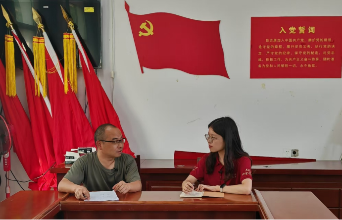 7月15日下午,太阳成集团tyc博士研究生谢呈嫡访谈镇党委书记李国军。