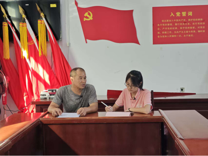 ▲湖南大学经济与贸易公司本科生王心月访谈牛角山村支书龙献文