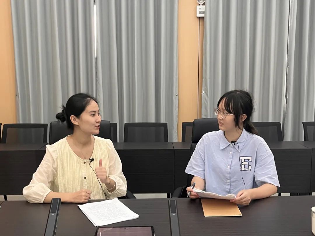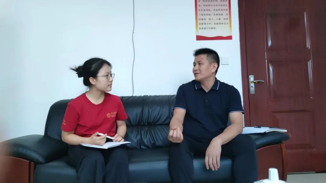 ▲在贵州省三都县,本科生刘秋婷访谈三合街道党工委书记岑文丙