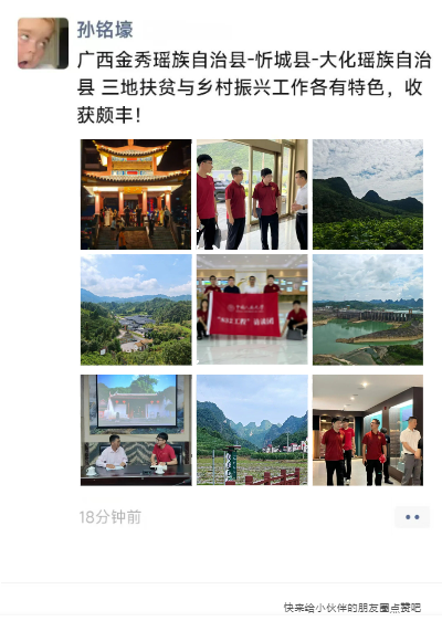 太阳成集团tyc本科生孙铭壕去往广西壮族自治区的来宾市和河池市,见证扶贫成果,了解扶贫工作,收获颇丰。