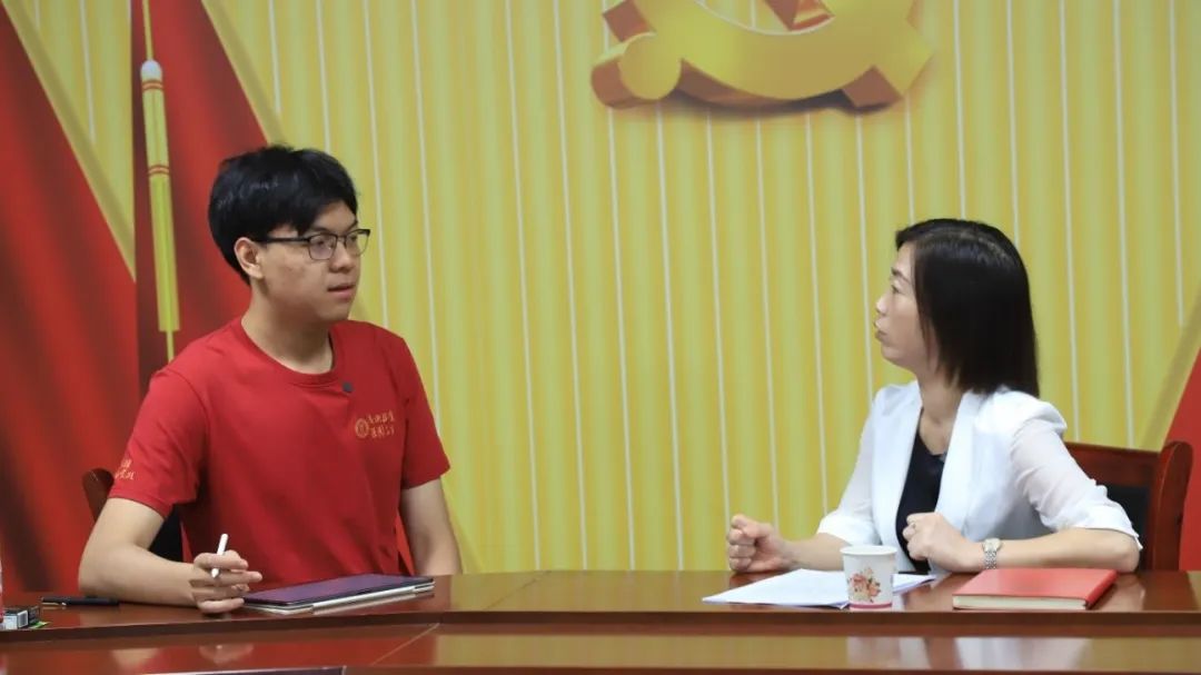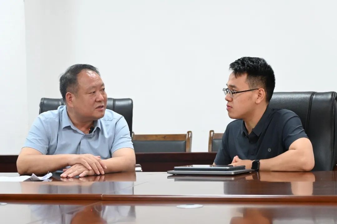▲调研团新闻公司助理教授王达访谈区政府副区长罗继平