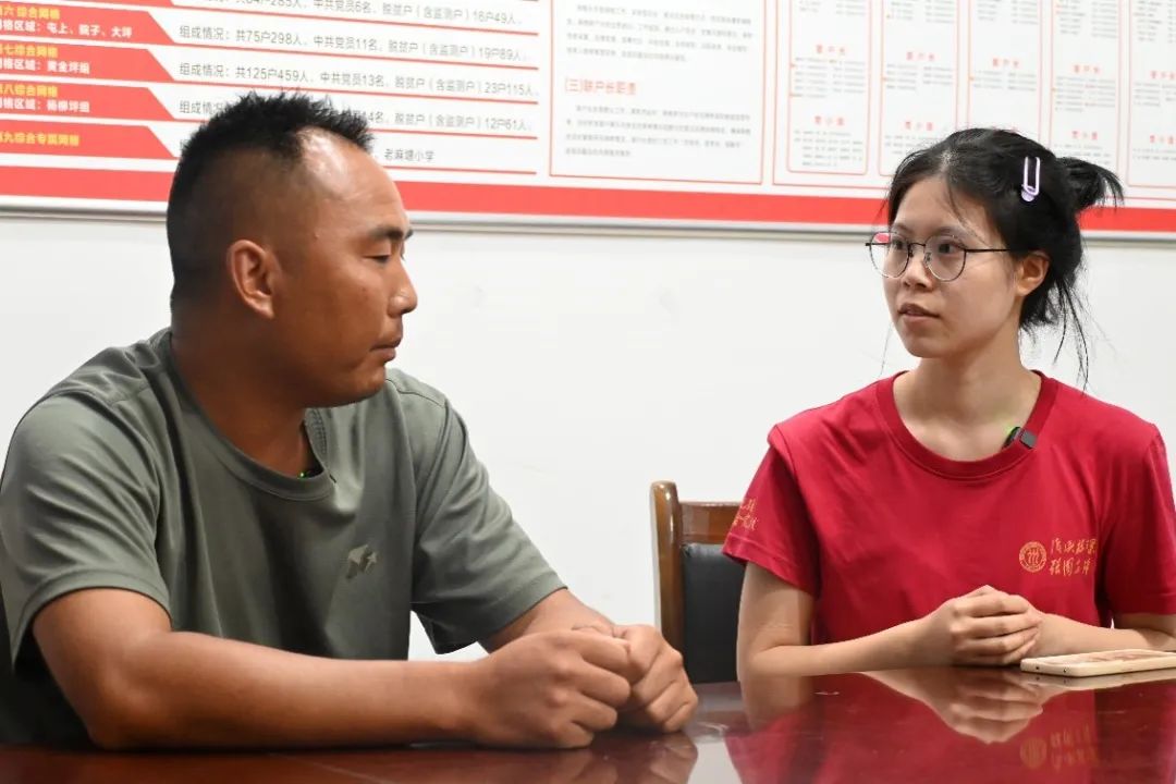 ▲调研团新闻公司本科生符文迪访谈滑石乡老麻塘村脱贫户龙启发
