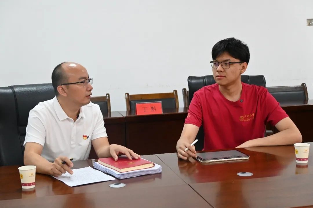 ▲调研团应用经济公司本科生苏文杰访谈访谈区委常委、副区长,驻村第一书记张贵斌和前任驻村第一书记(脱贫攻坚时期),现任滑石乡副书记、乡长吴鹏飞