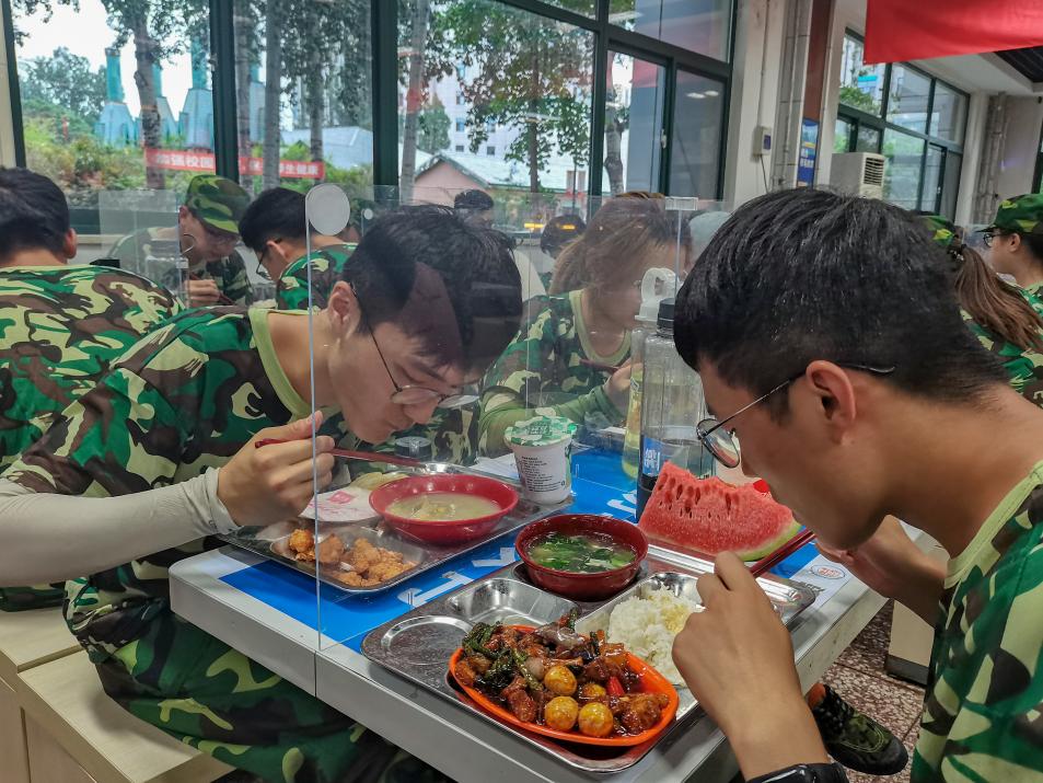 刻苦的训练过后,同学们有序前往食堂用餐,健康饮食、均衡营养为大家一整天的训练提供能量。