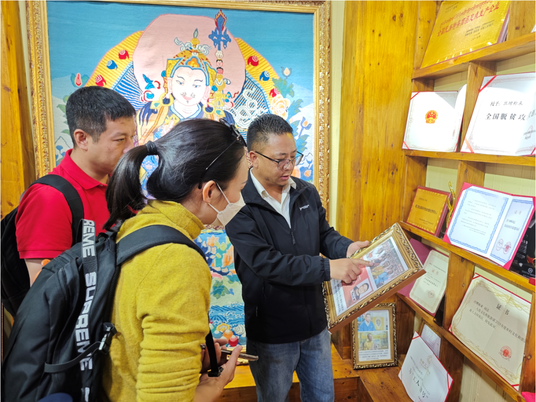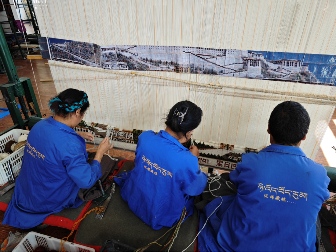 8月16日上午11点,访谈团来到江孜藏毯文化发展有限责任公司。经过多年的藏毯文化产业的发展,公司一直致力于传承和发扬藏毯工艺文化和产业可持续发展工作,为了让藏毯产业实现更好的社会与经济效益,不断结合手工藏毯独特的工艺特点和解决藏毯花色单一、品种少、精细度不过高,产品生产效率低等相关问题,先后研发了“藏毯纸样实用技术”与“五高传发”手工藏毯编织技艺,通过研发的技艺,实现了高质量、高效益、高效果、高道数、高效率的手工藏毯生产模式;能将建筑、绘画、书法等文化元素灵活地结合起来、融为一体,产出的藏毯还具有3D效果,突破了传统藏毯产品花色单一的瓶颈,成功实现了“私人订制”,让藏毯产业更加多元化,带动能力进一步增强,为藏毯产业振兴注入了新的活力。