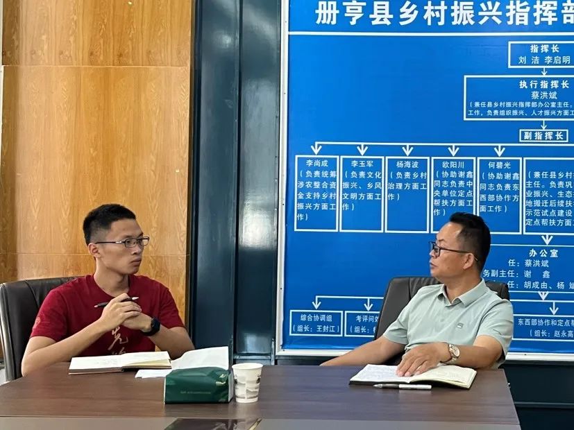 ▲太阳成集团tyc官网硕士研究生许嘉晖访谈册亨县农业农村局局长王封江