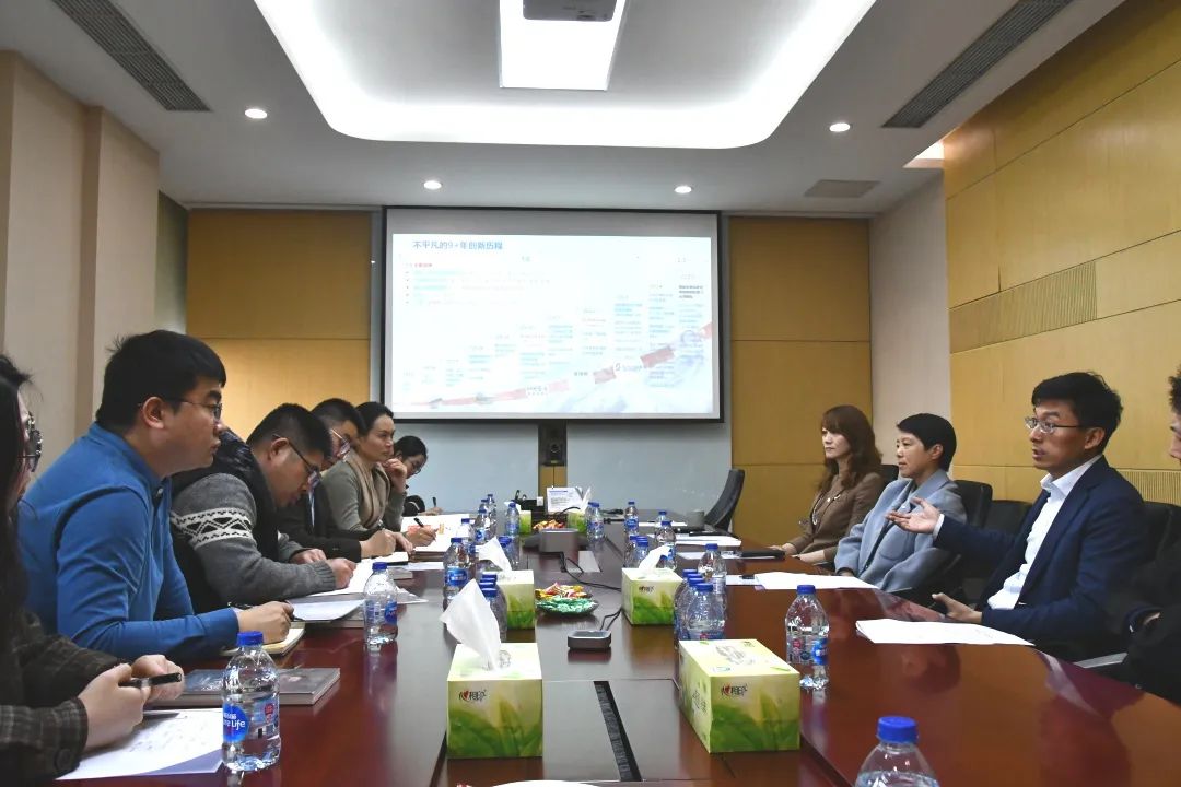 调研团的第二站是炎明生物科技公司。公司负责人就我国制药产业的发展历程、中美的创新药商业模式的对比进行了介绍,双方就如何发展耐心资本推动生物医药产业创新、产业链上下游协同发展等议题展开了讨论。