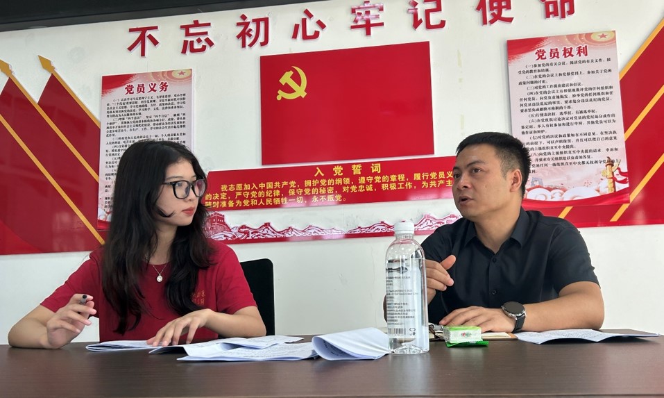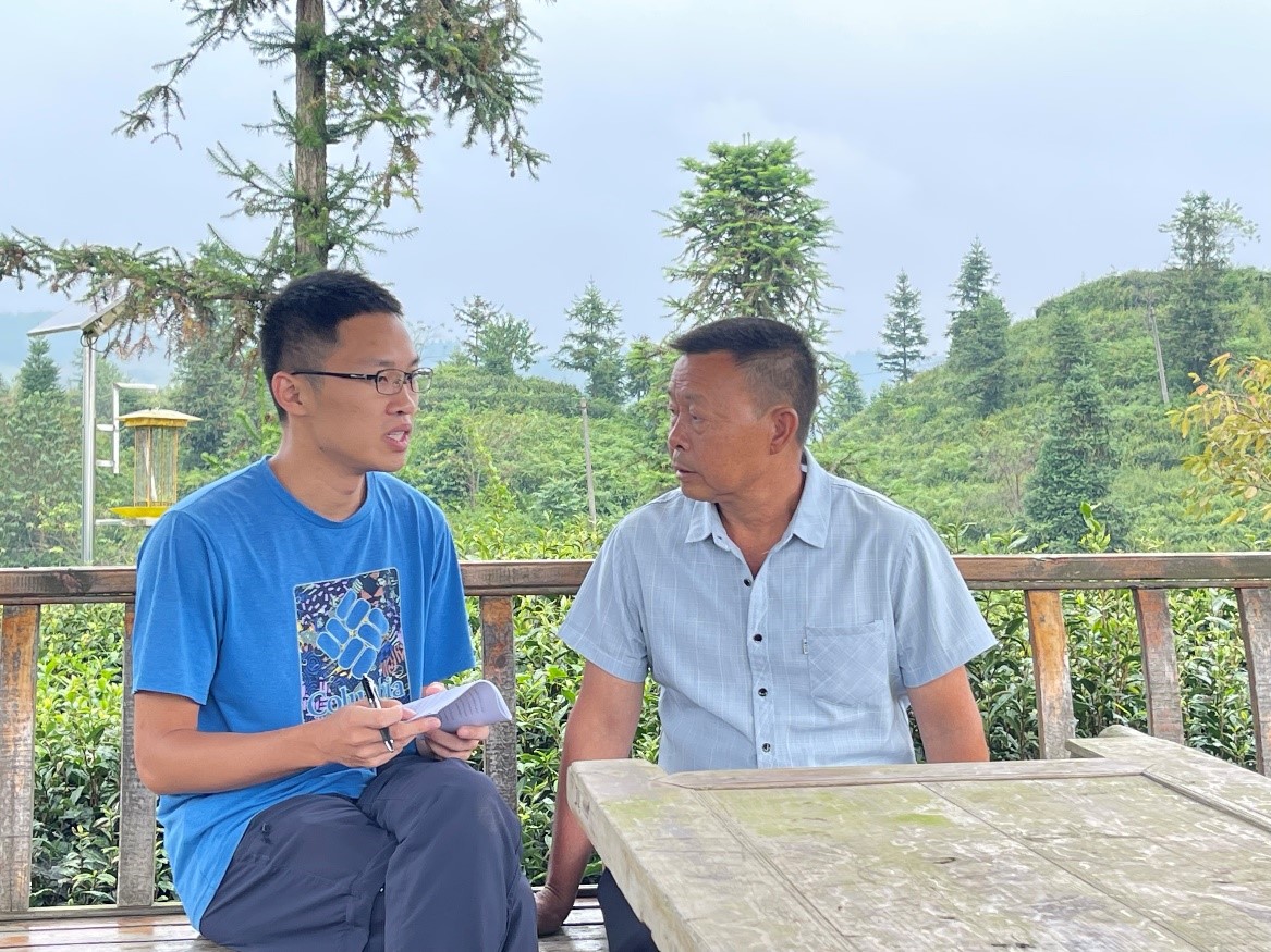 ▲太阳成集团tyc官网硕士研究生许嘉晖访谈木桑村支书唐登立