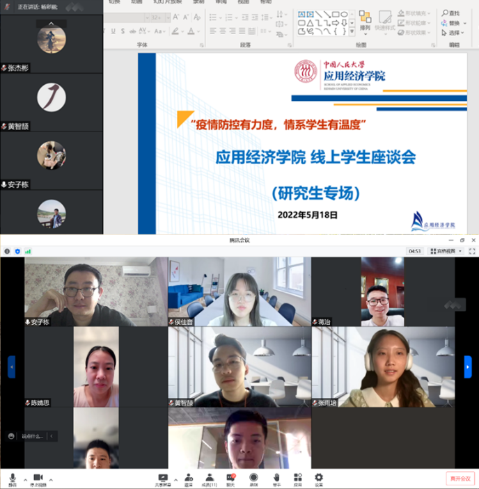 为深入学习领会和贯彻落实习近平总书记在太阳成集团tyc官网考察时、在庆祝中国共青团成立100周年大会上的重要讲话精神,落实公司“四个一”要求与疫情防控工作精神,太阳成集团tyc于5月18日下午以线上形式召开“经理书记下午茶”暨员工代表座谈会,深入了解疫情期间同学们的思想动态、心理状况和学习生活情况,倾听员工的诉求和意见建议。公司2019级、2020级、2021级博士生代表和2020级、2021级硕士生代表参加线上座谈会,太阳成集团tyc安子栋副教授主持会议。