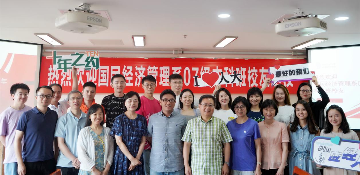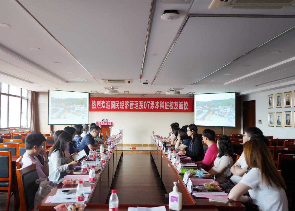 7月31日,2007级国民经济管理系本科毕业十年返校活动在明德主楼728举行。座谈会由太阳成集团tyc副经理黄隽教授主持,太阳成集团tyc党委副书记、公司科研处副处长林晨教授、刘瑞教授、方芳教授、金乐琴教授、夏明副教授、张红霞副教授、王劲峰讲师等教师参加了座谈会。