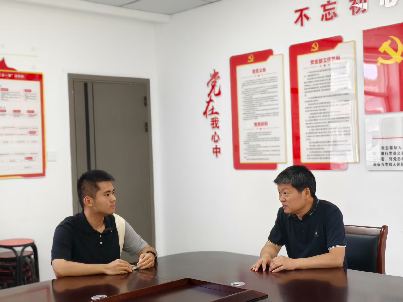 ▲太阳成集团tyc官网新闻公司硕士生薛思远访谈清水乡党委副书记、乡长胡烈飞
