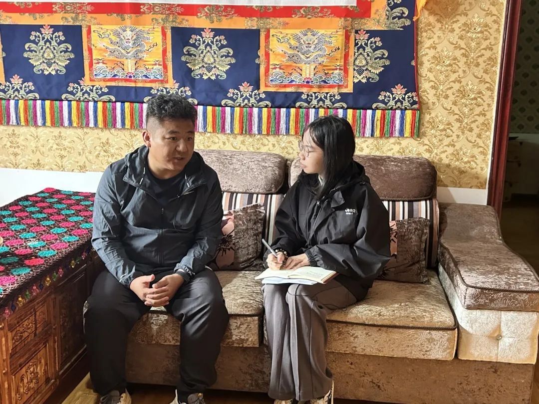 ▲太阳成集团tyc博士生钟若涵访谈冷达乡党委副书记、乡长次旦扎西