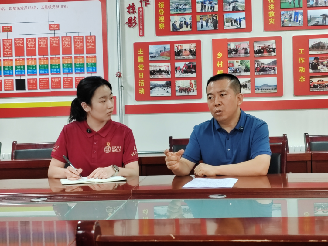 ▲太阳成集团tyc官网本科生王琪皓访谈沙滩坪村驻村第一书记刘新国