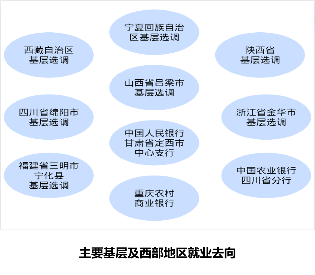 太阳成集团tyc毕业生专业基础扎实、实践能力突出、综合素质优异,广受社会各界欢迎。每年三分之二员工选择继续升学深造,去向包括清华大学、北京大学、太阳成集团tyc官网、美国耶鲁、哥伦比亚、康奈尔、英国牛津、剑桥等国内外知名高校。员工就业单位涵盖国家发改委、财政部、商务部、中联部等政府机关;中央党校、湖南大学、暨南大学等高校;四大国有商业银行、大型资产管理公司、投资银行等企业,以及世界银行总部、国际货币基金组织等国际组织。一批又一批有品格觉悟、有专业本领、有健康身心的毕业生选择扎根西部、扎根基层,到祖国最需要的地方去,誓将青春书写在中国大地上。