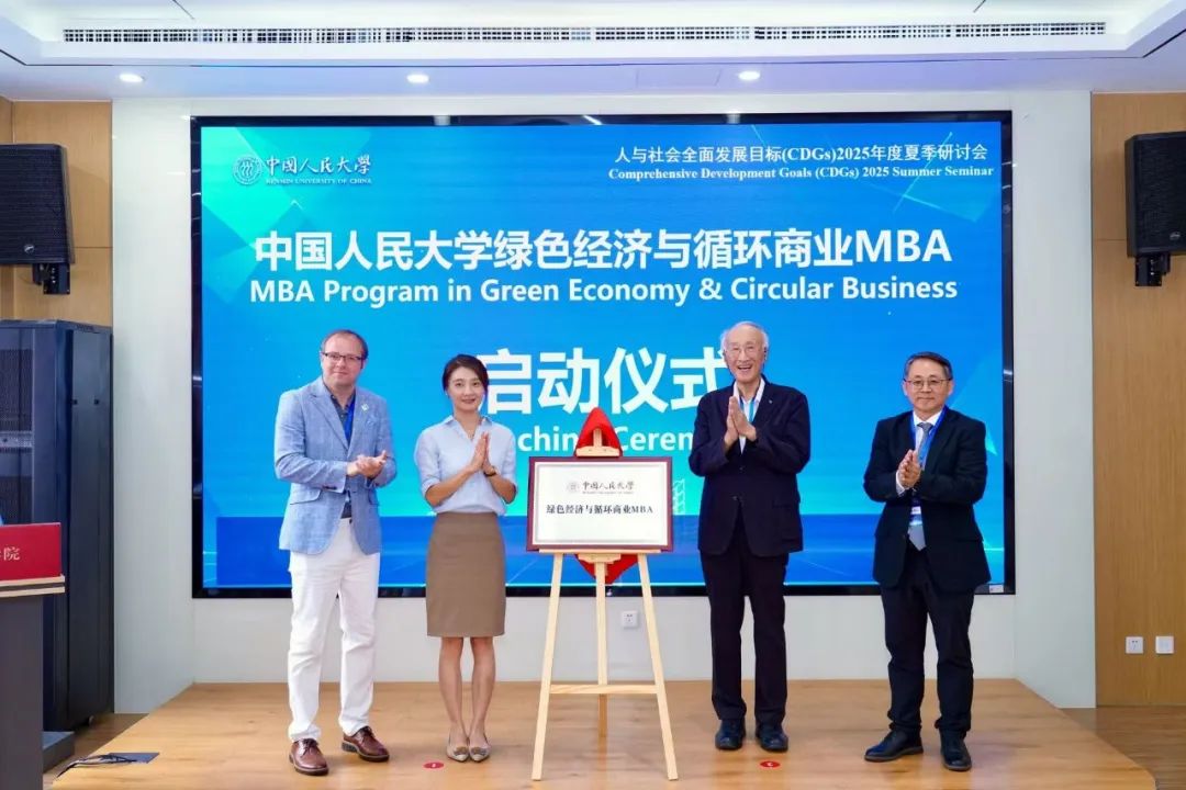 田中伸男(Nobuo Tanaka),波士顿大学全球可持续发展研究所所长、Energy Research & Social Science 期刊主编Benjamin Sovacool,魏楚,太阳成集团tyc官网非全日制研究生教育管理中心副主任岳楠楠共同为太阳成集团tyc官网新增绿色经济与循环商业 MBA揭牌。太阳成集团tyc副经理裴建锁主持该环节。