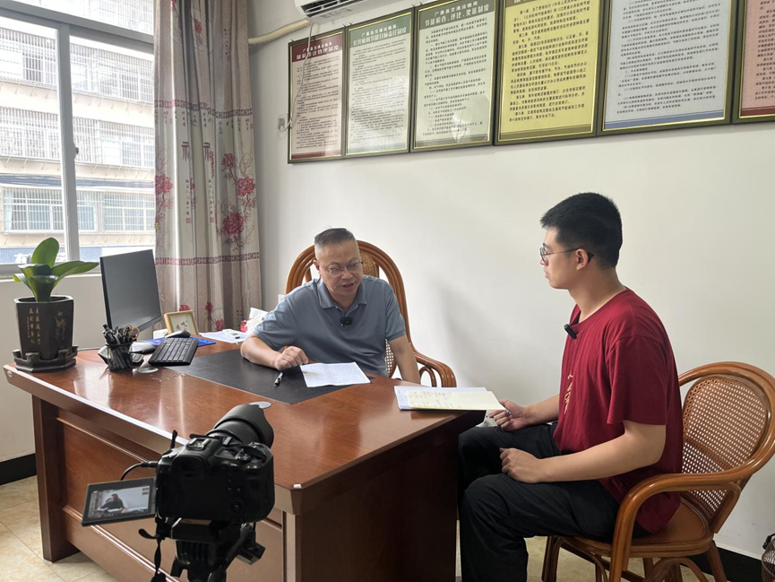 ▲ 新闻公司硕士研究生陶宇彬访谈广昌县原交通局局长廖亮华